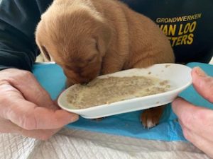 Deze week ook de puppy ren groter maken en stilaan speelgoed geven als ze de bijt rem kennen.